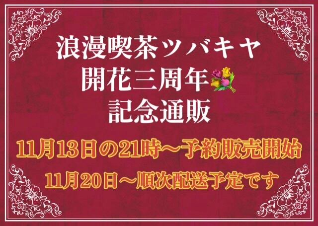 浪漫喫茶ツバキヤ開花三周年記念お菓子セットです。